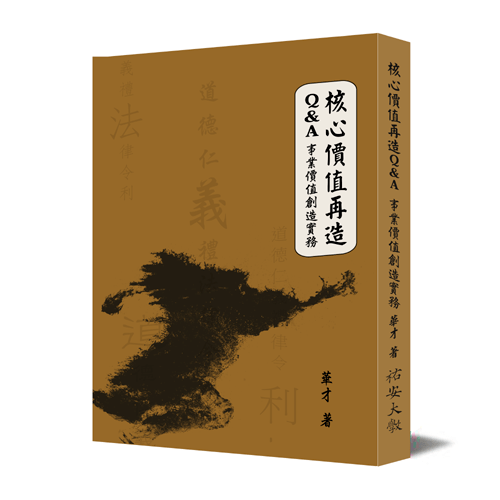 《核心價值再造Q&A:事業價值創造實務》為全球第一部「組織本體」、「核心價值再造」等原創新觀點現代事業組織發展、轉型、再造、進化入門著作。全書聚焦於五大領域: