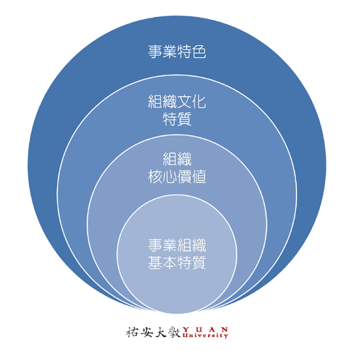 與「事業組織基本特質」距離更近的,則是「組織核心價值」,但「組織核心價值」也只是「事業組織基本特質」的抽象表徵之一。