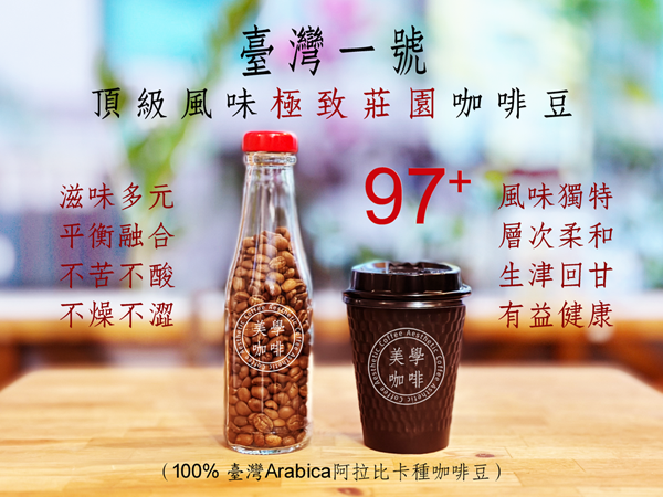 「臺灣一號極致臺灣咖啡豆」的熟豆價格,介於臺灣本地生產的「阿拉比卡咖啡豆」與「藝妓咖啡豆」之間,滋味也比單一「藝妓咖啡豆」更豐富,但特色略有不同。等級最高的「臺式臺灣咖啡豆」,則稱為「臺灣一號極致莊園臺灣咖啡豆」,並部分使用「臺灣藝妓咖啡豆」,目前熟豆價格略低於高級「臺灣藝妓咖啡豆」,風味則更勝高級「臺灣藝妓咖啡豆」。
