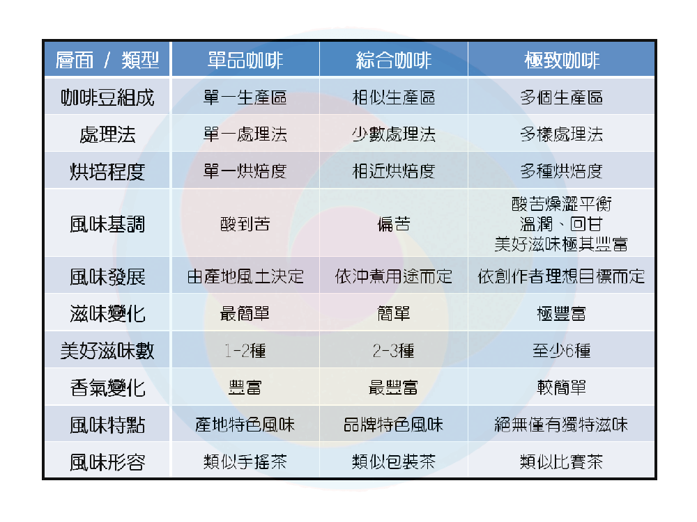 簡易區別「單品咖啡」、「綜合咖啡」與「極致咖啡」的方式如下: