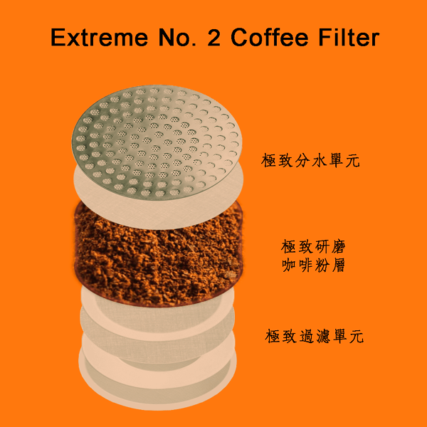 繼2023年6月研發出全球第一款可調控「分水網」高度咖啡濾器、暨全球第一款「熱萃取」慢速滴濾時間可超過十分鐘的咖啡濾器,及全球第一款「大容量不鏽鋼專業版」頂級養生「慢濾式」咖啡濾器「極致No.1咖啡濾器(Extreme No. 1 Coffee Filter)」之後,本月,再推出小容量透明版「極致No.2咖啡濾器(Extreme No. 2 Coffee Filter)」,為全球第一款「家用版」暨「隨身版」頂級養生「慢濾式」咖啡濾器。