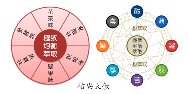 咖啡在口中的美好滋味主要有六種,分別為花茶味、果酸味、烘焙味、堅果味、焦糖味及發酵味等。能夠同時具備這六種滋味且美妙平衡的咖啡豆,就稱為「極致咖啡豆(Extreme Coffee Beans)」。是一種由本校特別研發的咖啡新類別,不僅品質佳,滋味更是超越所有單品咖啡豆。